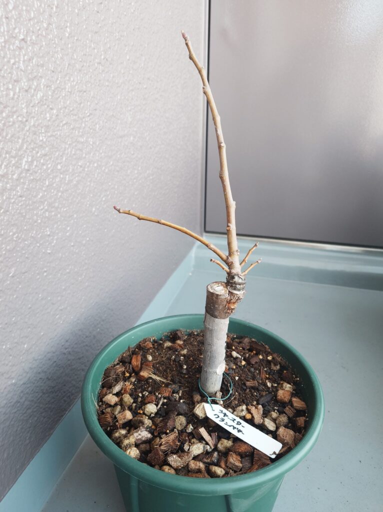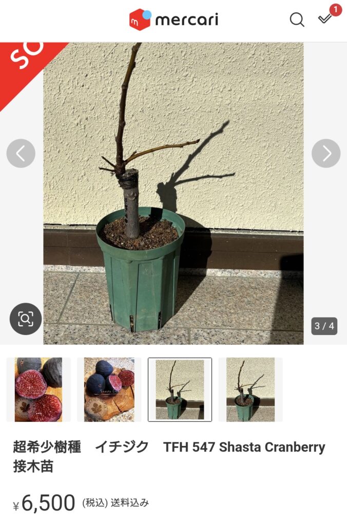 メルカリでイチジク「シャスタクランベリー」の接ぎ木1年生苗を購入しました。挿し木苗が多い中、接ぎ木苗という珍しさに惹かれ、2025年の冬に思わず購入してしまいました。
