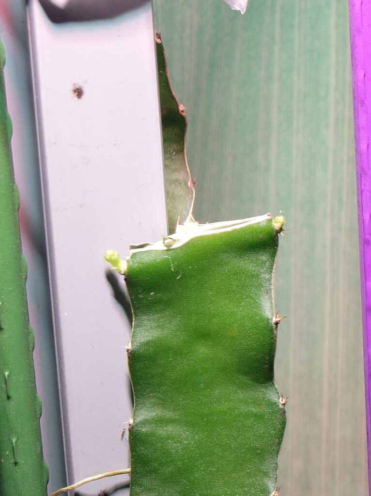 切り口はしっかり乾き、現在は2箇所から新芽が確認できています。順調に回復している様子です。今回の結果を見ると、現在の育成環境はドラゴンフルーツに合っている可能性がありそうです。