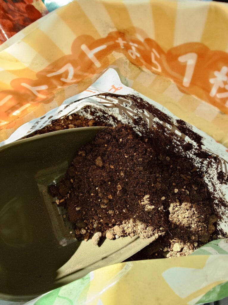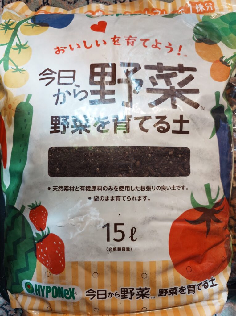 ※植え替え直後は、元肥が多すぎると根の負担になるため、「ハイポネックス 今日から野菜 野菜を育てる土」はやや少なめにしています。