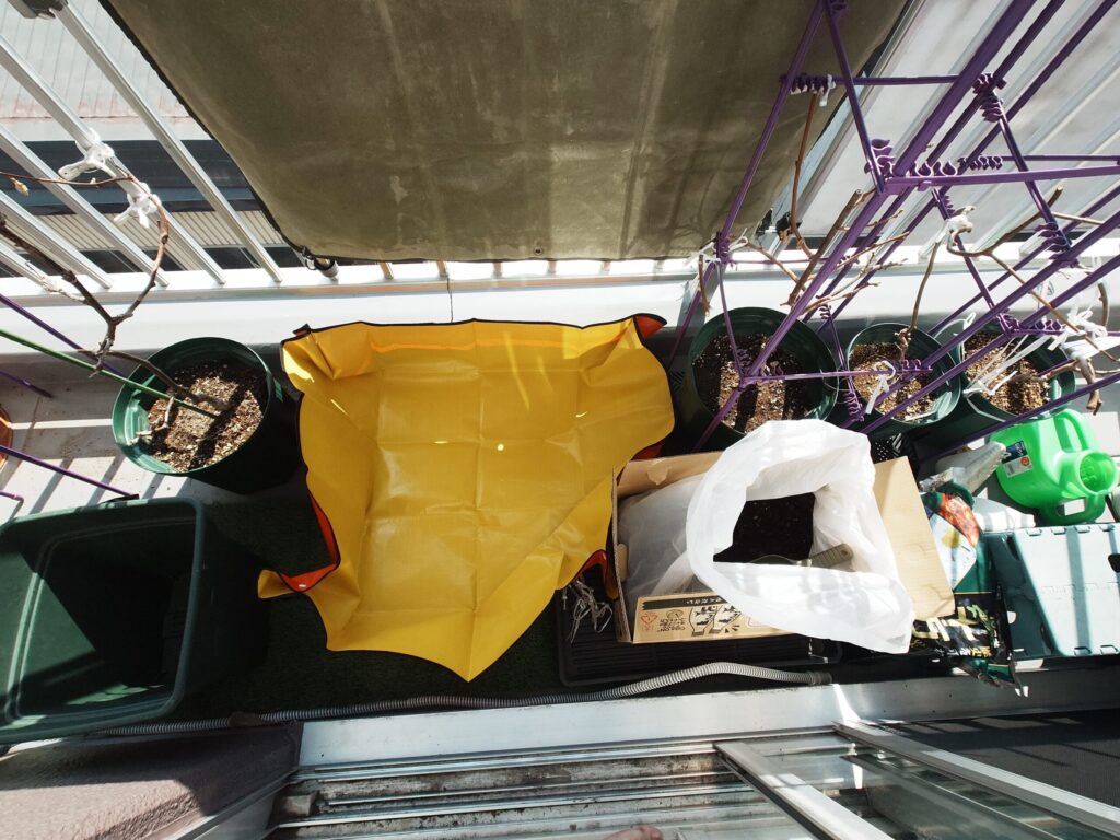ベランダでの栽培では、急に室内管理へ切り替えることもあるため、できるだけ軽い用土になるように自分でブレンドしています。